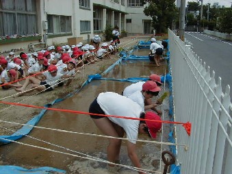 五年生が全員協力して田植えをしました。