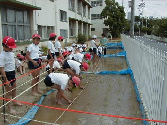 みんなで、一苗ずつていねいに、心をこめて植えていきました。